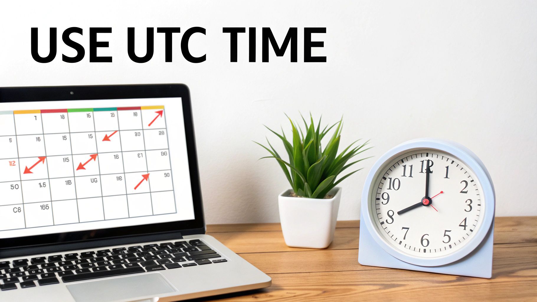 The single best way I’ve found to fight this chaos is to adopt Coordinated Universal Time (UTC) as your team's unshakable standard. UTC is the one constant in a sea of shifting clocks; it never, ever changes for DST. By making it your single source of truth, you completely sidestep the mess created by local time changes.