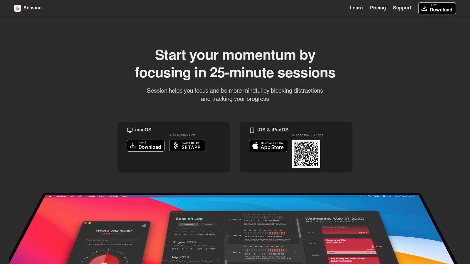 What makes Session one of the best Pomodoro technique apps is its focus on building momentum. The detailed analytics provide a clear view of your daily and weekly focus patterns, helping you understand where your time is best spent. With seamless iCloud sync between its macOS menu-bar utility and the iOS companion app, your focus sessions and data are always up to date. Its elegant interface and practical deep-work integrations make it an excellent choice for dedicated Apple users committed to improving their concentration.