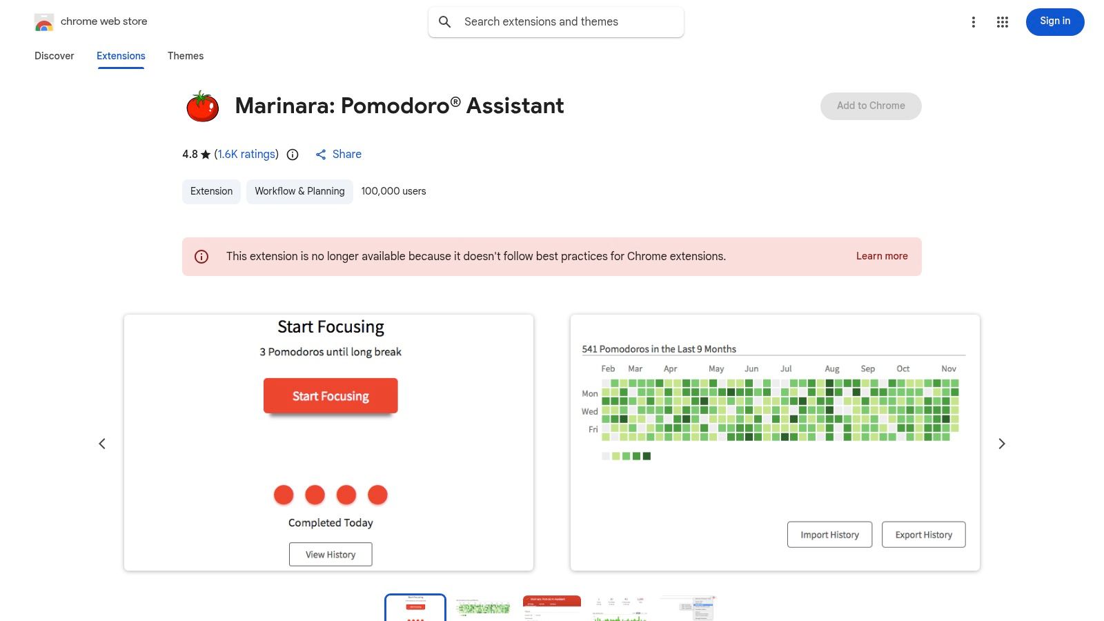 4. Chrome Web Store — Marinara: Pomodoro Assistant
