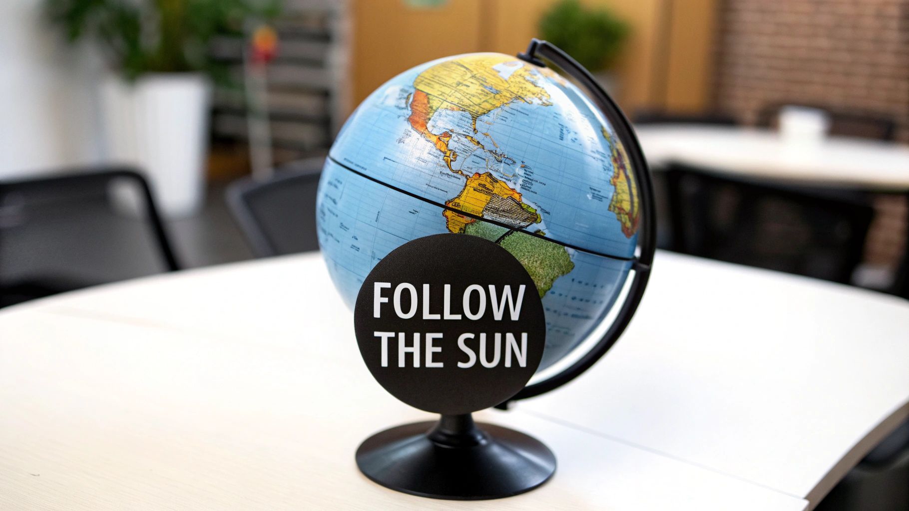 A great way to approach this is with the 'follow-the-sun' model. Instead of dragging everyone into a single, painful meeting, work gets passed between regions. The European team hands off their progress to the North American team as their day ends, who then pass the baton to the Asian team. It creates a continuous, 24-hour workflow that dramatically cuts down the need for live meetings.