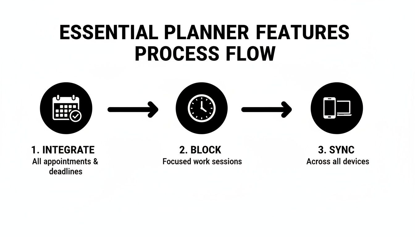 A truly useful weekly planner app does more than just show you a calendar. It’s designed to cut down on the administrative busywork so you can actually focus on what matters. These are the non-negotiables that separate a basic scheduler from a tool that genuinely makes you more productive.